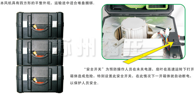 2、福龙ES-Q风机采用四方形平整外观设计,外形更加的适合堆叠捆绑运输。